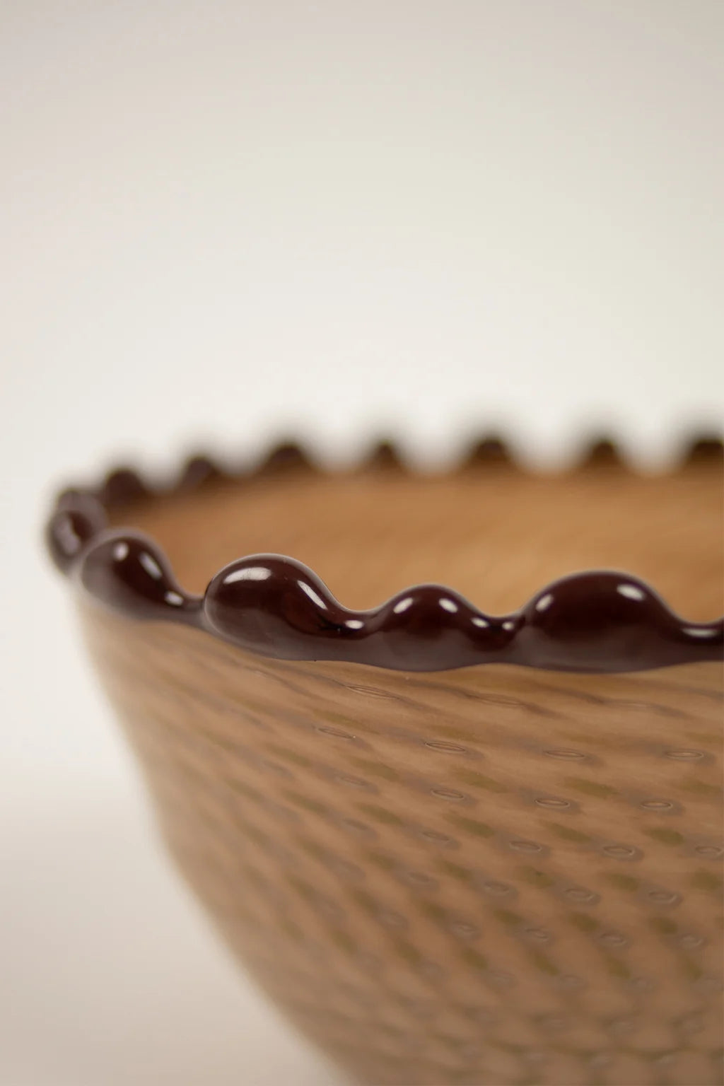 Lekfull skål med dekorativa prickar längs kanten. En enkel men vacker skål, idealisk för servering av små tilltugg.