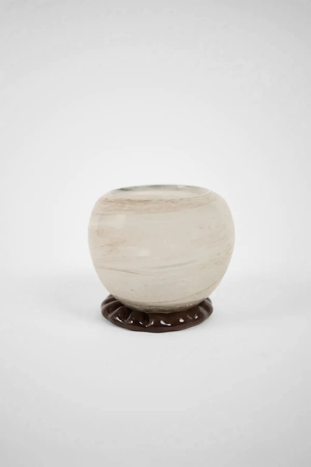 Handgjord ljuslykta med ett mjukt, romantiskt uttryck och en vågig fot. Vacker att kombinera med vas i samma stil.