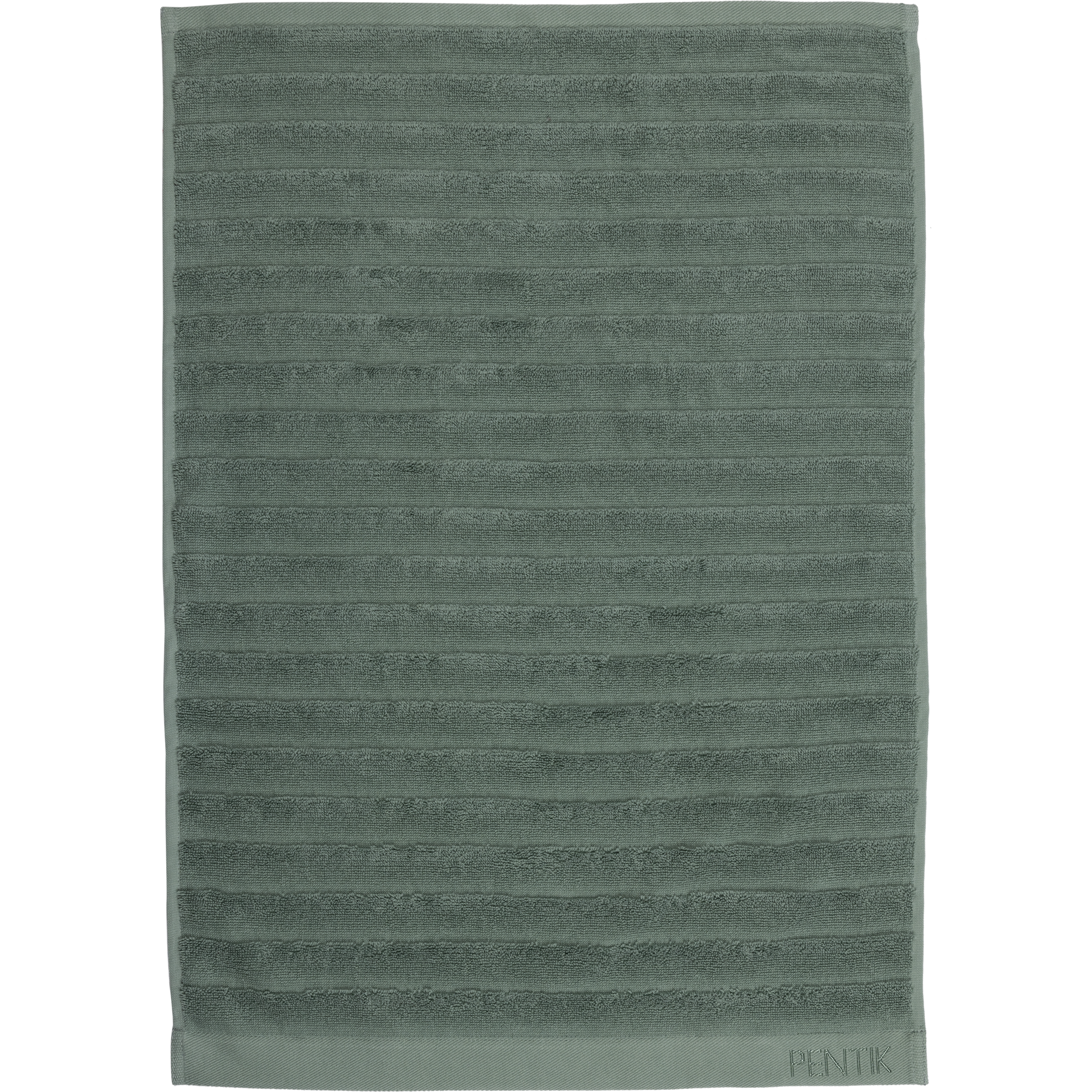 Dyyni-handduken mäter 50x70 cm. Den gröna handduken är i 100 % bomullsfrotté och kan tvättas i maskin i 60 grader.