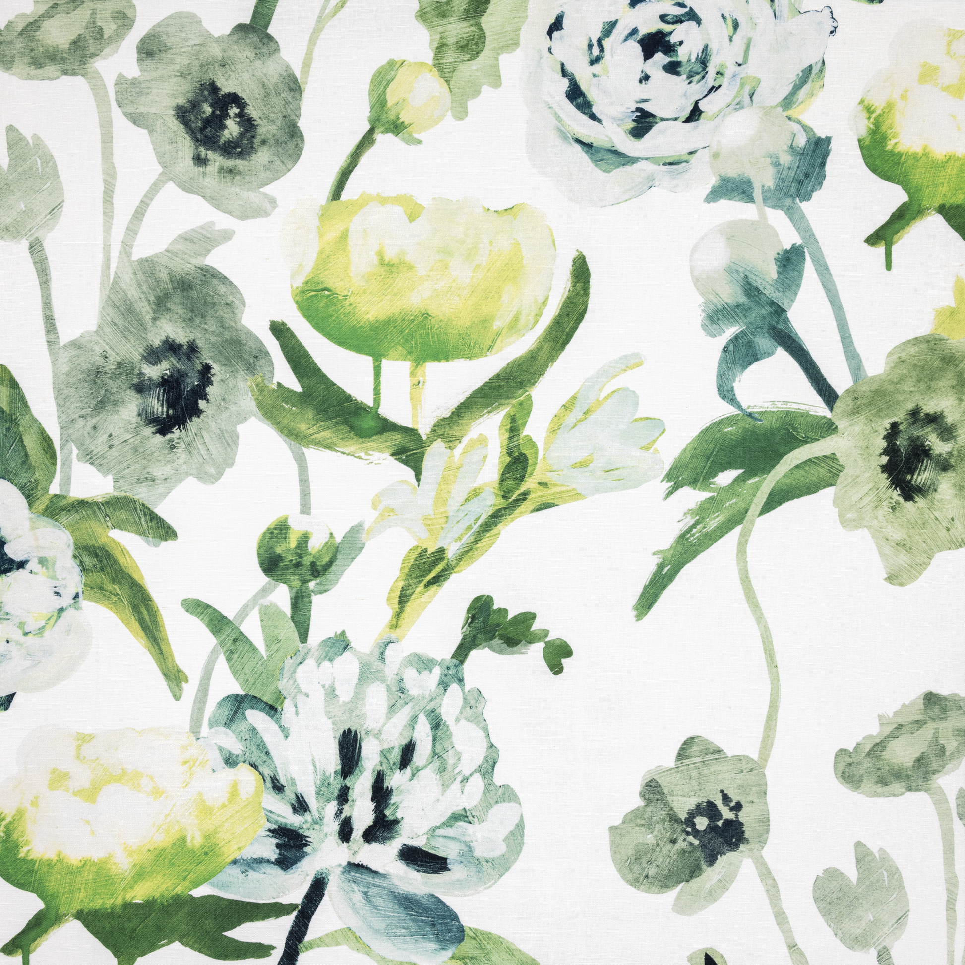 Det gröna tyget Freesia är en blandning av bomull och linne med en bredd på 150 cm.