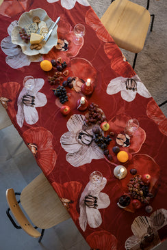 Haave röd bordssduk i vacker satinvävd bomull 145x250 cm