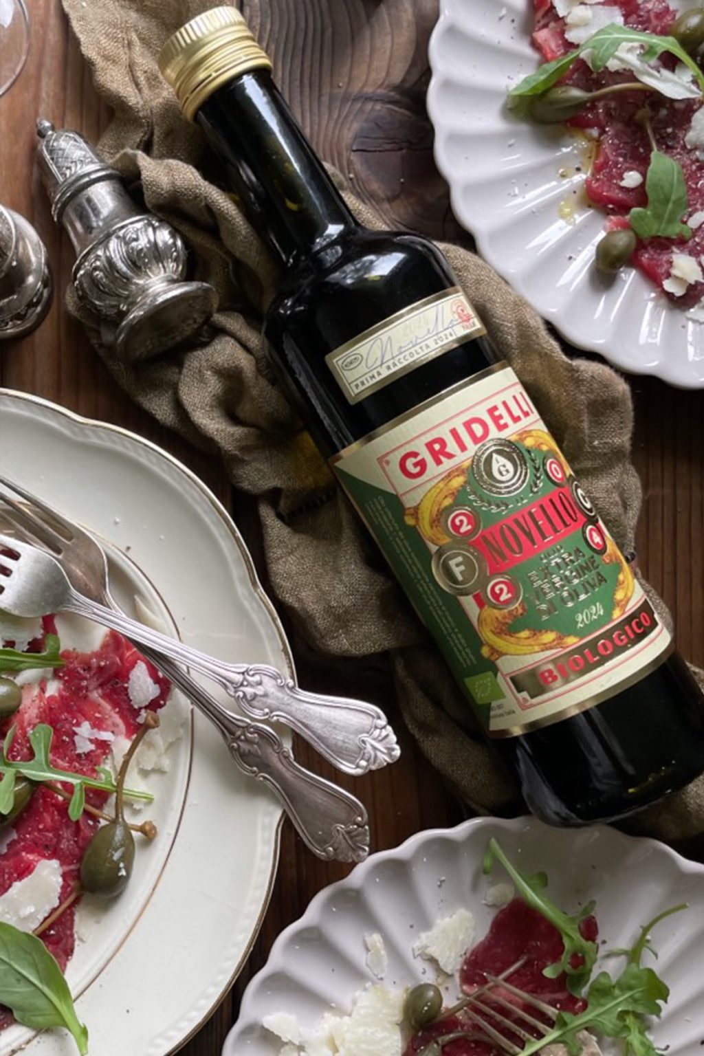 Ekologisk olivolja av högsta kvalitet, extra vergine. Görs på olivtypen Correggiolo som växer på kullarna utanför Rimini i det bördiga Emilia-Romagna. Novello är namnet på den allra första pressningen från årets skörd.