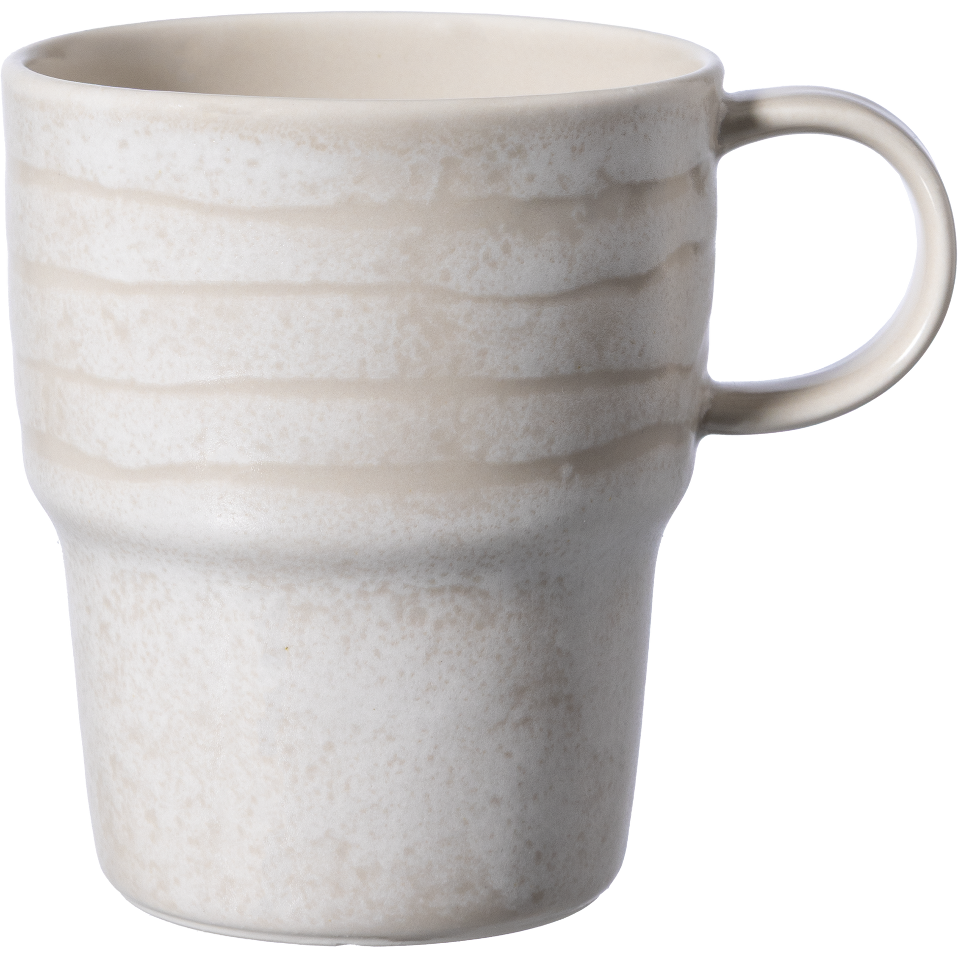 Den vitbeige stapelbara muggen har en kapacitet på 0,25 liter. Muggen är maskintvättbar och kan säkert användas i ugn, bakugn, mikrovågsugn och frys.