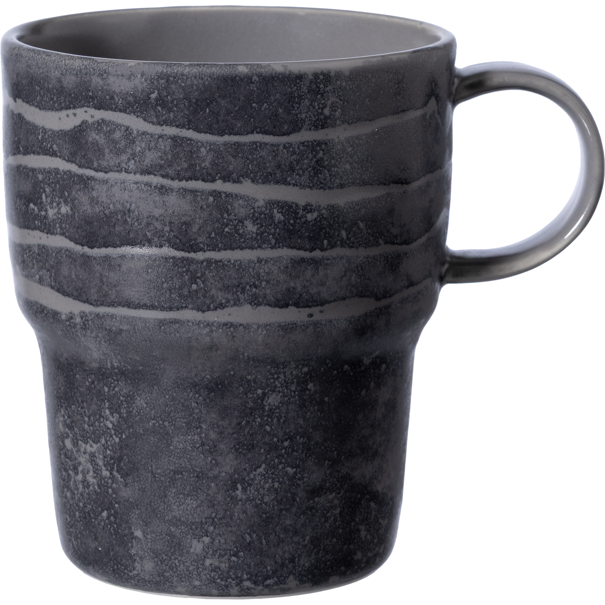 Den mörkgrå stapelbara muggen har en kapacitet på 0,25 liter. Muggen är maskintvättbar och kan säkert användas i ugn, bakugn, mikrovågsugn och frys.