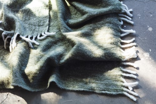 Mjuk tjockare pläd i en borstad ullblandning med fransar.