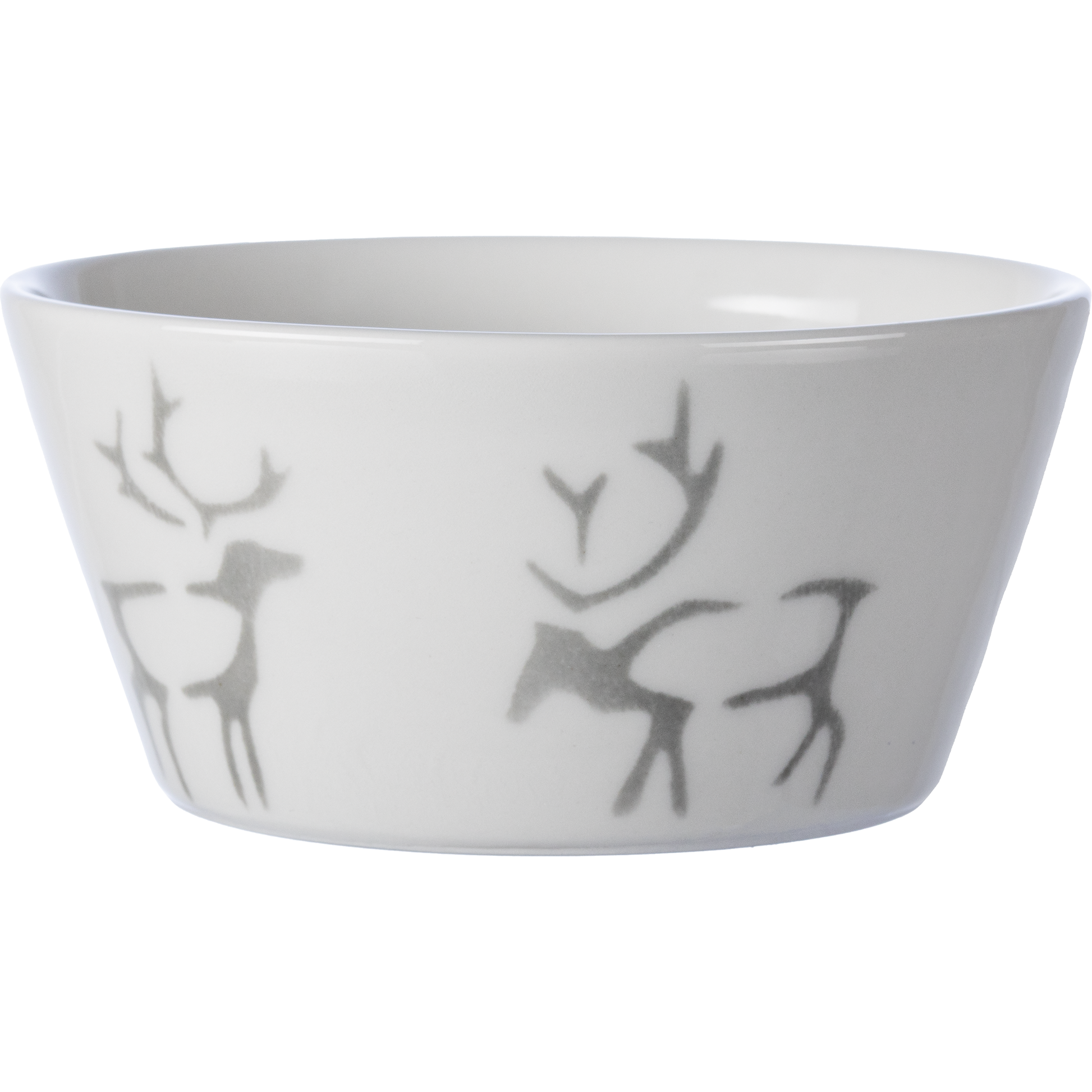 Saaga-skålen har en kapacitet på 0,4 liter. Skålen har fått en ny design med en något brantare kant än tidigare. Skålen är dekorerad med fem renmotiv. Skålen är maskindiskbar och kan säkert användas i elektrisk ugn, bakugn, mikrovågsugn och frys.