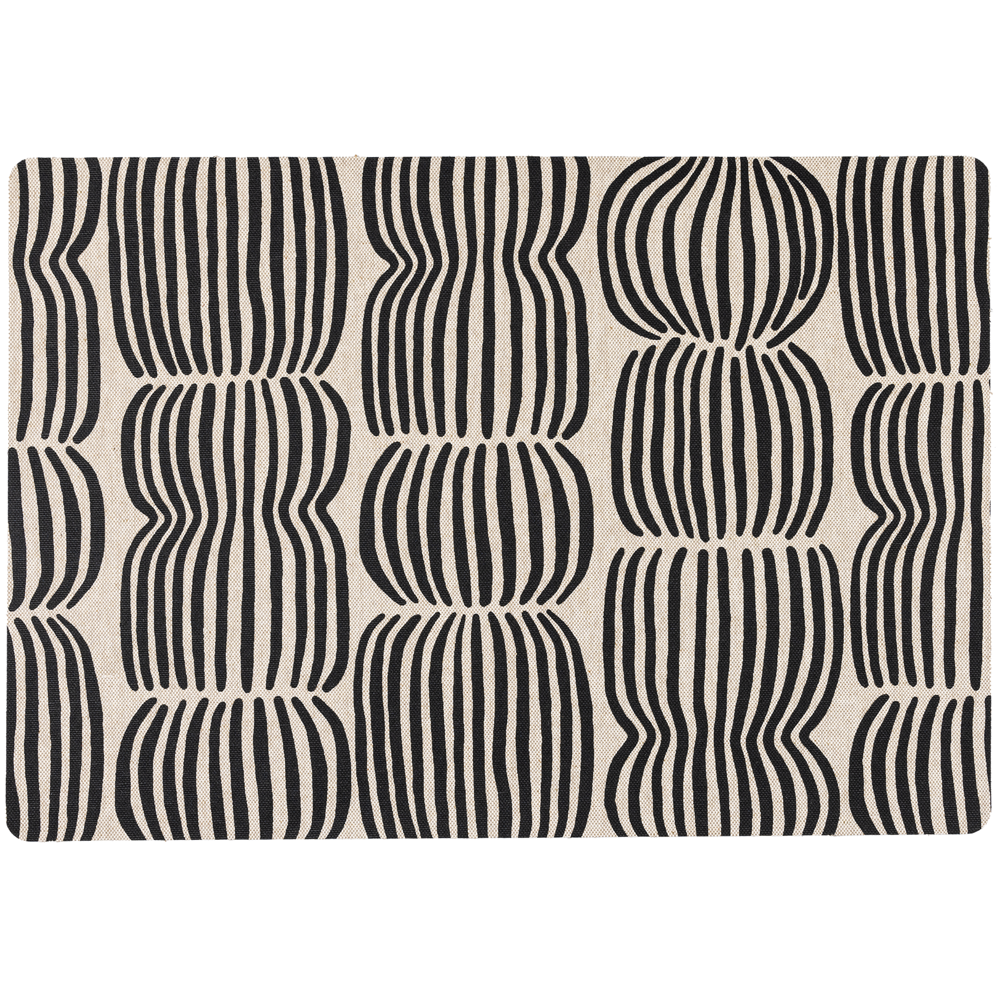 **Sädesfält som vajar i vinden. Inslagna för dig att ta med hem.** Fält av moget säd som vajar i sensommarbrisen är en hypnotisk syn som är unik för norr. Nu kan du ta med dig den upplevelsen hem med den svarta versionen av Minna Niskakangas klassiska tryck. Oavsett om du vill somna eller njuta av ditt morgonkaffe omgiven av sädesfält, hittar du Vilja-mönstret på allt från kökstextilier till tyger till muggar. **Vilja-bordsunderlägget är tillverkat av akrylbelagd bomull och kork och är lätt att torka av. Bordsunderläggets storlek är 30x43 cm. Handtvätt.