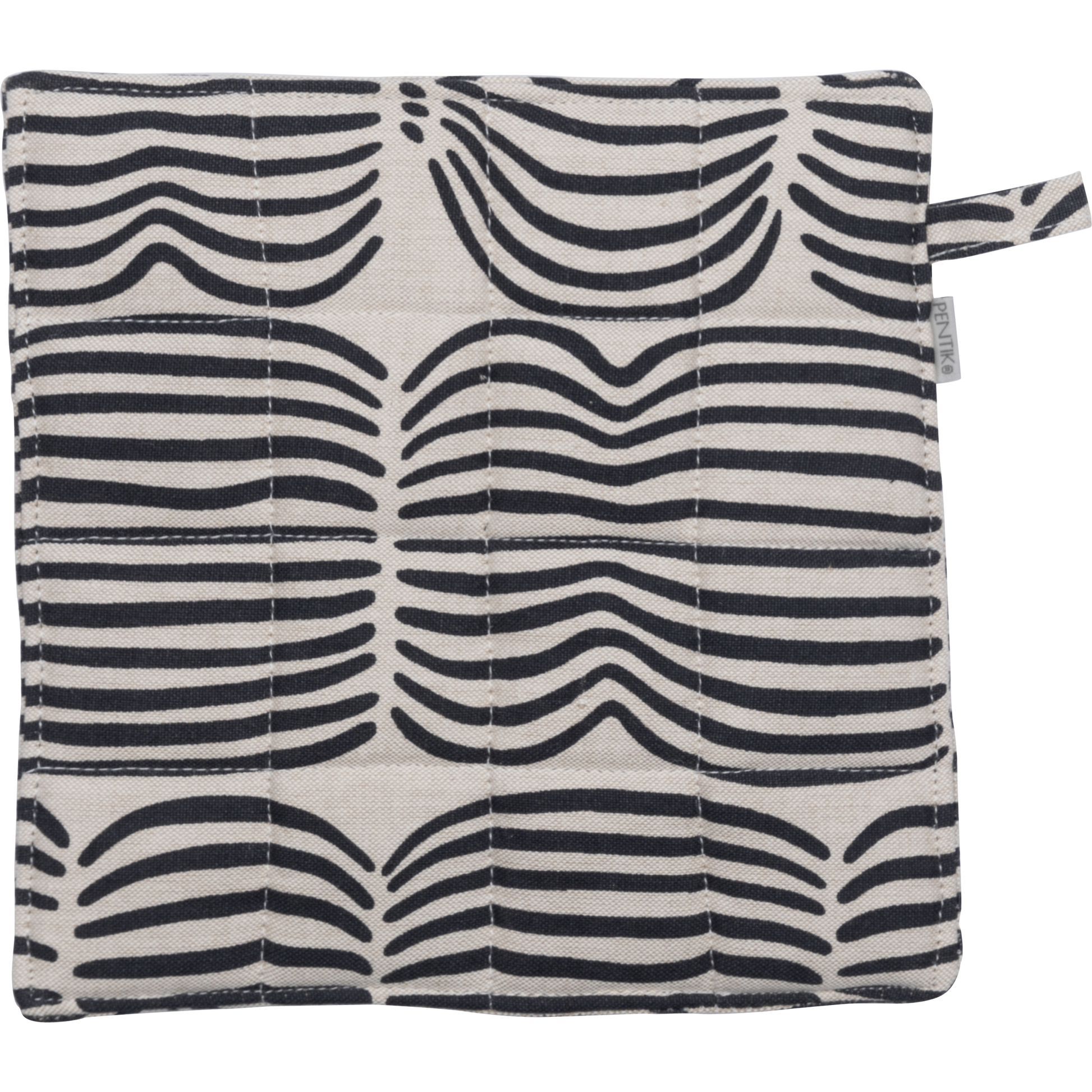 Storleken på Vilja-grytlappen är 21x21 cm. Den kan maskintvättas i 60 grader. Se upp för ugnsmotstånd och öppen låga. Produkten är avsedd för hantering av varm disk.